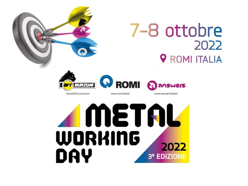 Il 7 e 8 ottobre 2022 non perderti Metal Working Day! Una giornata dedicate alla condivisione di idee e nuove strategie di lavoro nata dall’unione di 3 aziende: ROMI Italia, BFT Burzoni e Answers CAD/CAM.